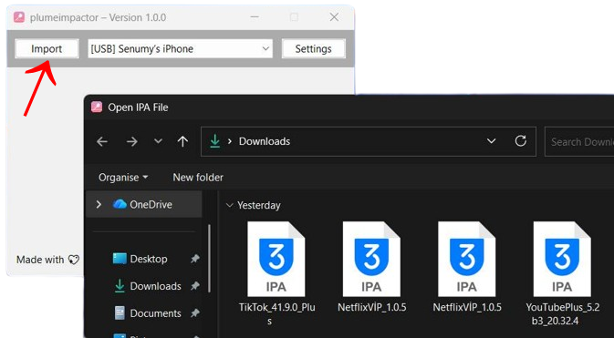 PlumeImpactor is a cross-platform IPA signer and IPA installer for iPhone and iPad. It communicates with Apple’s servers through your Apple ID, generates the signing certificate, and installs the app using standard iOS services—just like iTunes or AltServer.