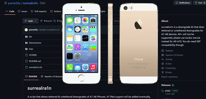 Created by developer pwnerblu and released as an open-source project on GitHub, surrealra1n is a Linux-based downgrade tool for A7 devices, specifically the iPhone 5s (models iPhone6,1 GSM and iPhone6,2 Global).